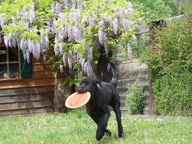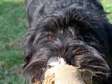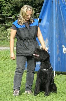 Yrka wurde am 27. Juli 2006 bei ihrem Züchter Franz Wechs geboren. Sie ist eine Tochter von Akerblommans Imigrant und Dargo vom Hatzbachtal. Sie hat noch 7 Geschwister. Wie schon öfters waren wir bei Franzi zu Besuch um wieder mal "Welpen zu schauen". Damals wollten wir zwar eine Riesenschnauzerhündin aber diese sollte schon ungefähr ein Jahr alt sein. Somit waren wir zwar zweimal den Wurf besuchen hatten jedoch keinen Schimmer davon, dass einmal eine Hündin aus dieser Verpaarung bei uns einzieht. Zumindest nicht für immer, denn als Franzi nach Deutschland mußte, haben wir auf Yrka schon ein paar Tage (und laute Nächte....) aufgepasst. Bei Franzi´s Rückkehr brachte er uns "Bonny" vom Teufelshof mit. Leider verstarb Bonny eine Weile später und wir waren wieder auf der Suche nach einer ca. einjährigen Hündin. Nach einiger Zeit erfolgloser Suche machte Franzi uns das Angebot uns Yrka, welche er sich selbst für die Zucht behalten hatte, zu überlassen. Nunmehr war auch sie schon sechs Monate alt. Nach einiger Zeit an Überlegung - zu gut waren noch die schlaflosen Nächte in Erinnerung und das anhängliche Wesen der Hündin (kommt sie damit klar nicht immer die Nummer 1 zu sein - zwangsweise durch die anderen Hunde, die wir haben?) waren wir doch noch etwas im Ja-Nein-Doch gefangen. Nachdem ich die Hündin aber das erste Mal bei der Arbeit mit unserem Schutzhelfer gesehen hatte - vollkommen ruhig und gelassen - nicht die geringste Spur von "hibbelig" - war die Entscheidung gefallen: Wir holten Yrka zu uns (an dieser Stelle sei Franzi gedankt, dass er es mit uns ausgehalten hat!). Wie sich inzwischen bestätigt hat, ist Yrka eine sehr anhängliche Hündin, die sich völlig unproblematisch in unseren Familienverband eingefügt hat (bis auf das Gejaule in den ersten paar Nächten....) Sie ist total freundlich zu unseren Kindern, liebt es, wenn ich ihr die Frisbeescheibe schieße und für´s Ohrenkraulen würde sie - glaube ich - sogar einen Handstand machen.....:)) Ach ja, einen Spitznamen hat sie auch von uns bekommen: "Hupe" - zeitweise hört sie sich nämlich so an...... Yrka steht mittlerweile bereits in der Ausbildung, sie lernt sehr schnell (manchmal zu schnell...), arbeitet toll mit in der UO, im Schutzdienst sowieso und was die Fährtenanfänge betrifft bin ich auch sehr zufrieden. Ich glaube, falls es so gut weiter läuft wie bisher könnten wir ein gutes Team werden! | ||||||||||||||||||||||||||||||||||||||||||||||||||||||||||||||||||||||||||||||||||||||||